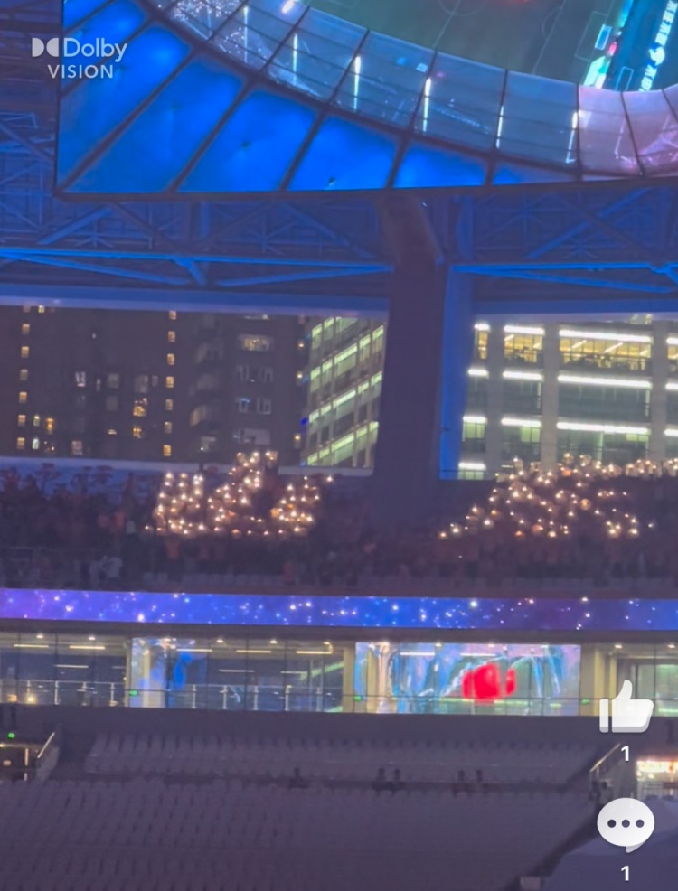 热情山东!远征客场,泰山球迷用闪光灯拼出“山东”二字支持球队